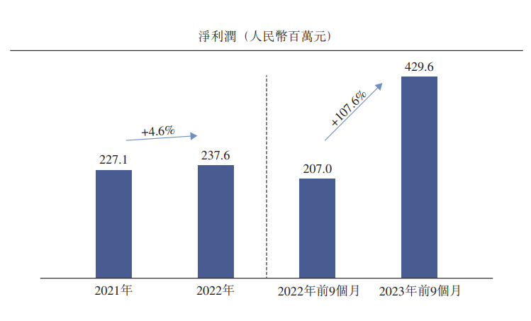 盈利能力:尽管受到COVID-19的影响,小菜园的净利润仍由2021年的2.27亿元增长至2022年的2.38亿元,并由2022年前9个月的2.07亿元大幅增长至2023年前9个月的4.30亿元。2023年前9个月净利润同比增速达107.6%。根据沙利文报告,该等增速领先于行业。