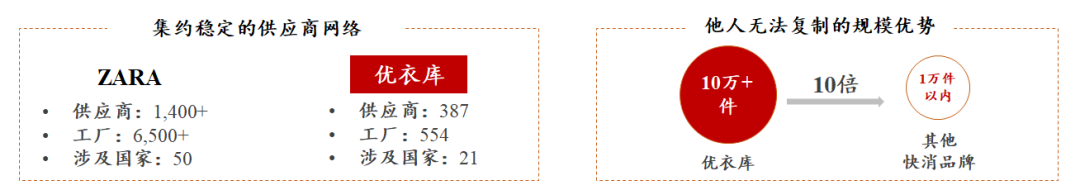 产品端控制少量的SKU,生产端以巨大的订单量形成规模效应,数十倍于同行其他品牌的订单量,成为其无法被他人复制的成本优势,这也是其保证终端平价还能有所盈利的保障。