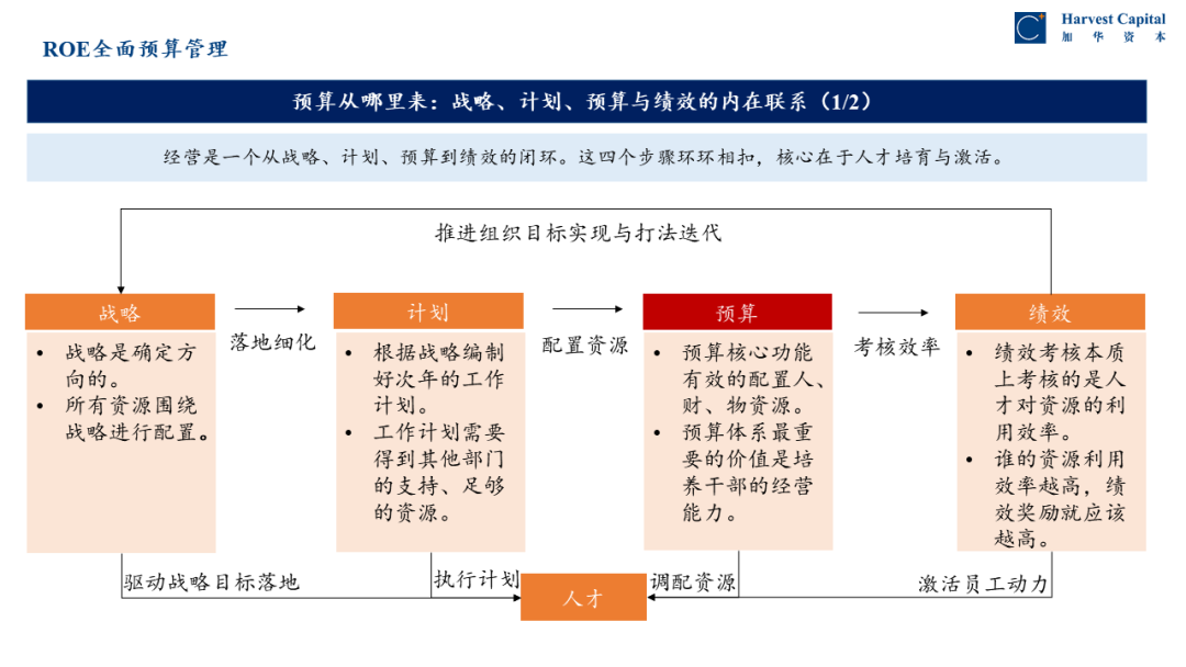 战略是人才驱动目标落地的,计划是人才执行的,预算是人才调配资源的,绩效是激活员工动力的,ROE体系本质上也是人才培育体系。