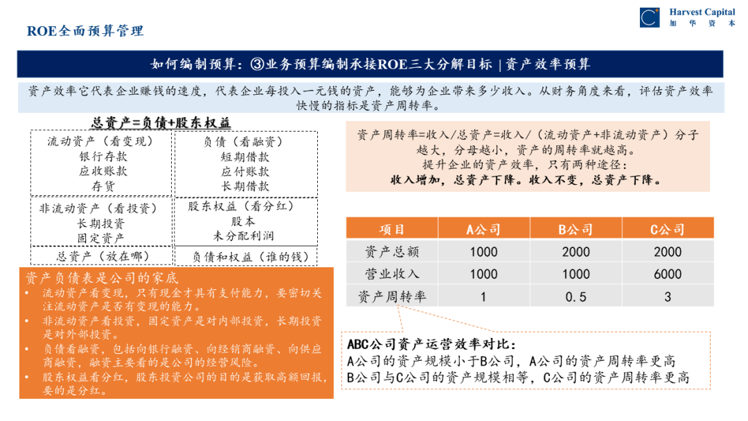 其实这个也很好理解,因为像我们最开始那一页提到的案例,就是企业如果只考核利润的话,很有可能会造成业务部门,他会用账期去妥协。所以我们通过对资产效率指标的考核,可以更好地规避业务部门的风险。