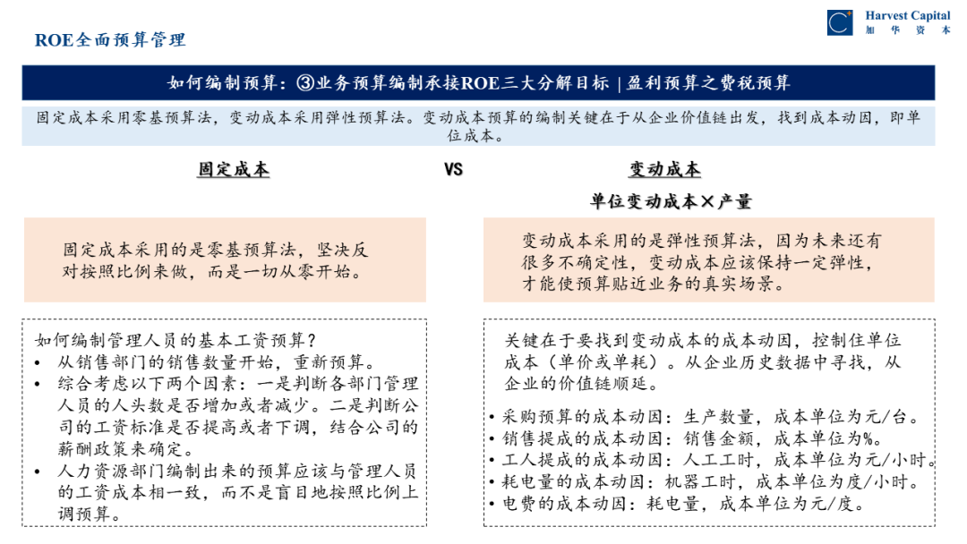 比如说基数有可能是销量,也有可能是产能,也有可能是其他的业务参照系的数据,就是可变成本了。固定成本的话,我们建议使用零基预算法去做编制。