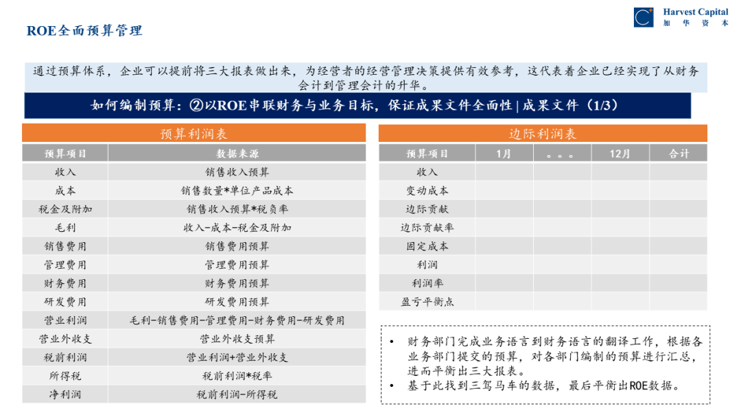重点提示的是,企业除了要平衡出预算利润表之外,企业还需要做边际利润表,更好实现管理。