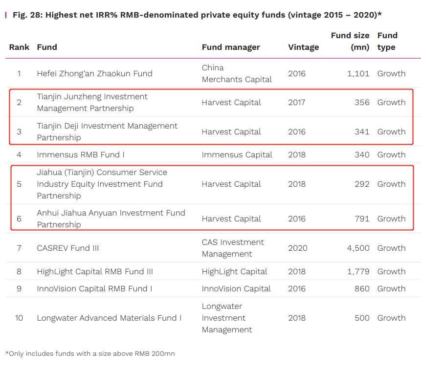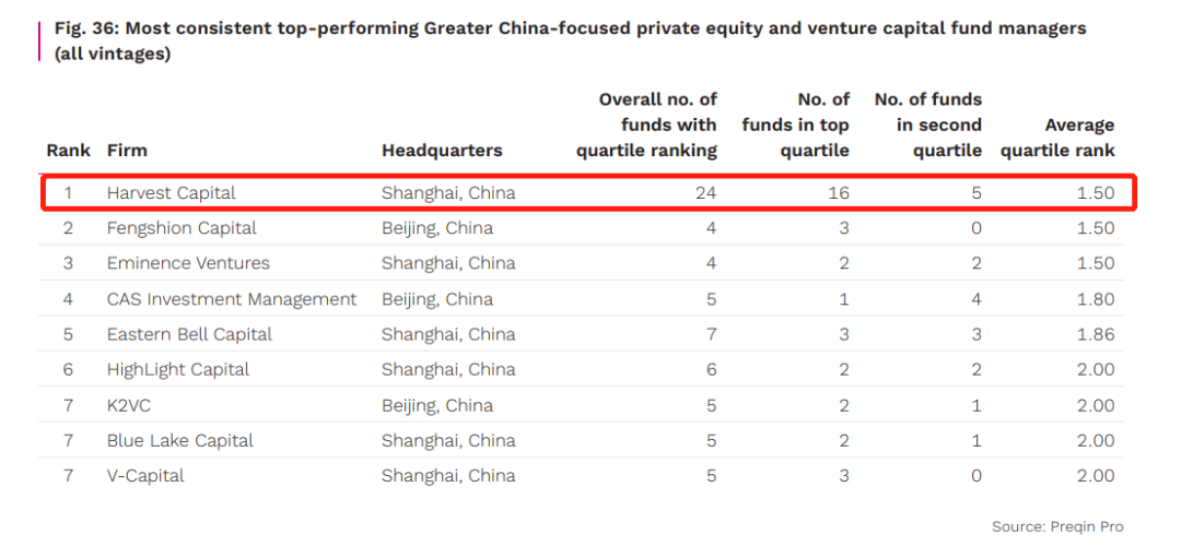 Harvest Capital was awarded the first position in Preqin's (睿勤) 2023 China Continuous Best Performance list.