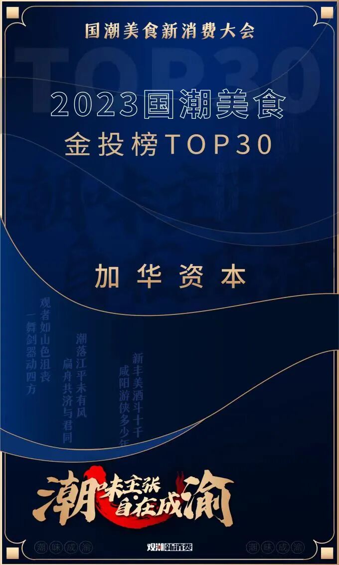 本次评选中,加华资本荣获「2023国潮美食金投榜·TOP30 」。