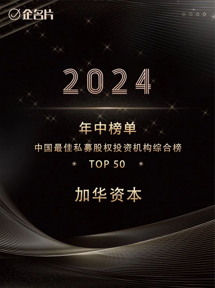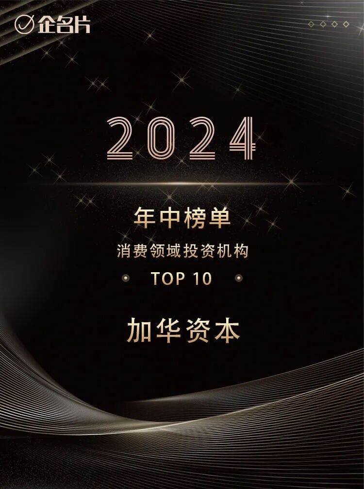 加华资本获企名片2024年中「 消费投资机构前10 」「中国最佳PE前50」