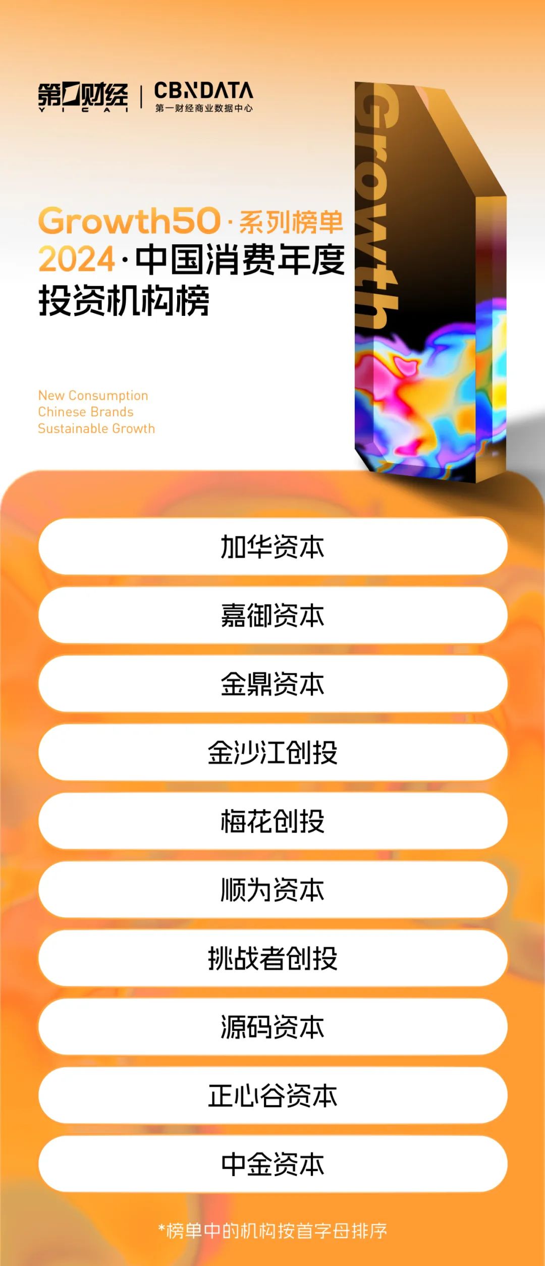 2025年1月13日,第一财经、第一财经商业数据中心(CBNData)在今日正式揭晓“2024中国消费年度投资机构评选结果,加华资本荣获2024中国消费年度投资机构TOP10。