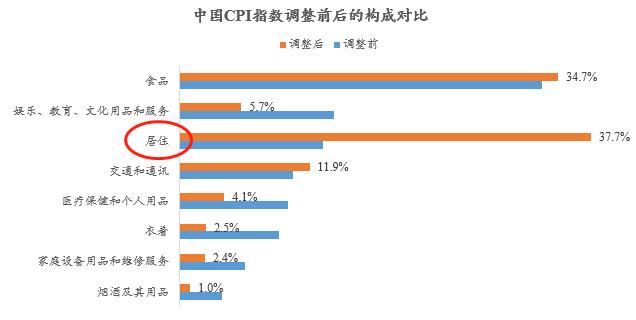 中美CPI的构成差异自然有其经济发展阶段和产业结构的影响,但若大致按照美国较为成熟的经济模式下CPI的构成比重,模拟还原中国CPI,我们居住类目会达到最高占比37.7%,略高于食品类目的34.7%,二者合计占据了中国CPI构成的70%以上。