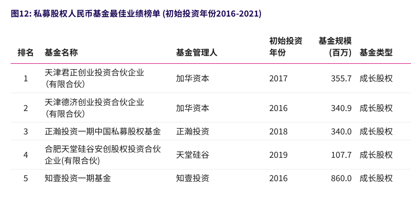 在众多参与本次中国私募股权投资行业业绩基准项目的基金及基金管理人当中,Preqin 分别从基金及管理人层面中进行评比,列出了人民币及美元基金排行榜,及最具顶尖业绩稳定性的管理人。