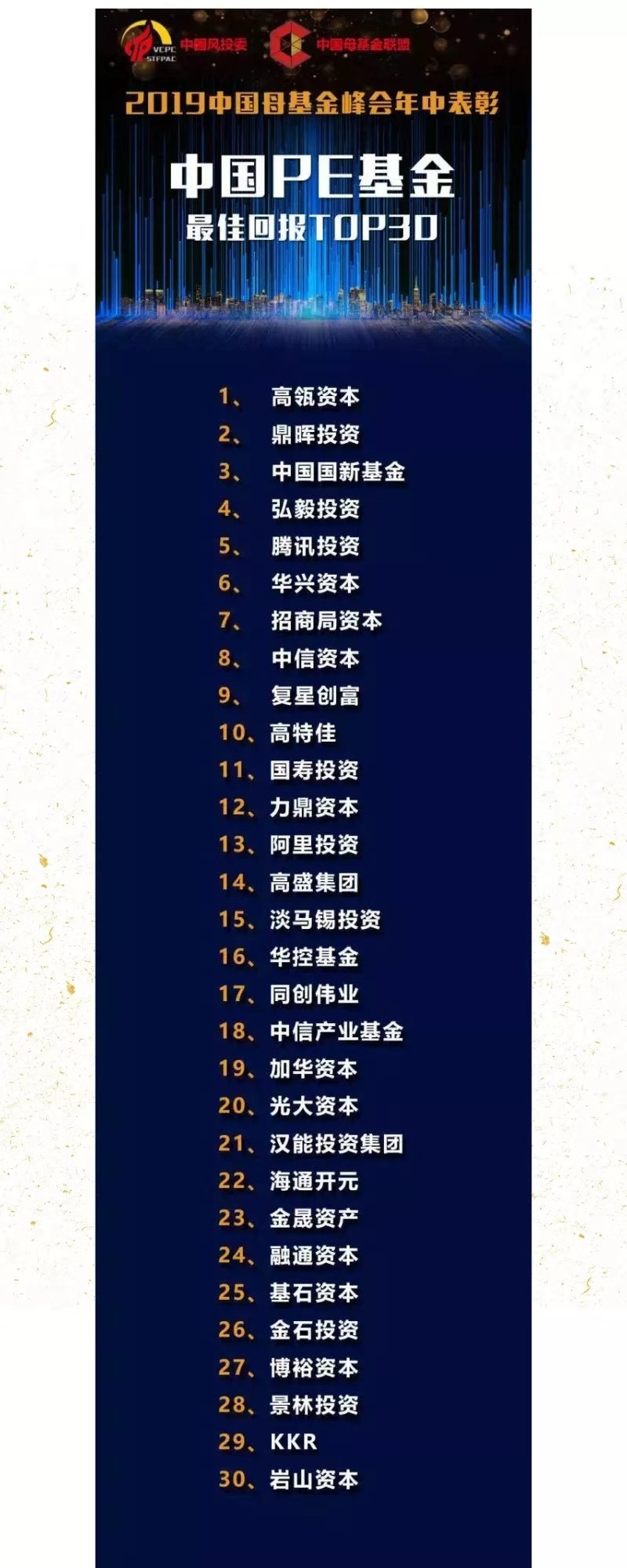 At the close of the summit, the 2019 China Fund of Funds Summit Mid‑Year Commendation List was released, with **Harvest Capital** recognized as one of the **Top 30 PE Funds for Best Returns in China**.