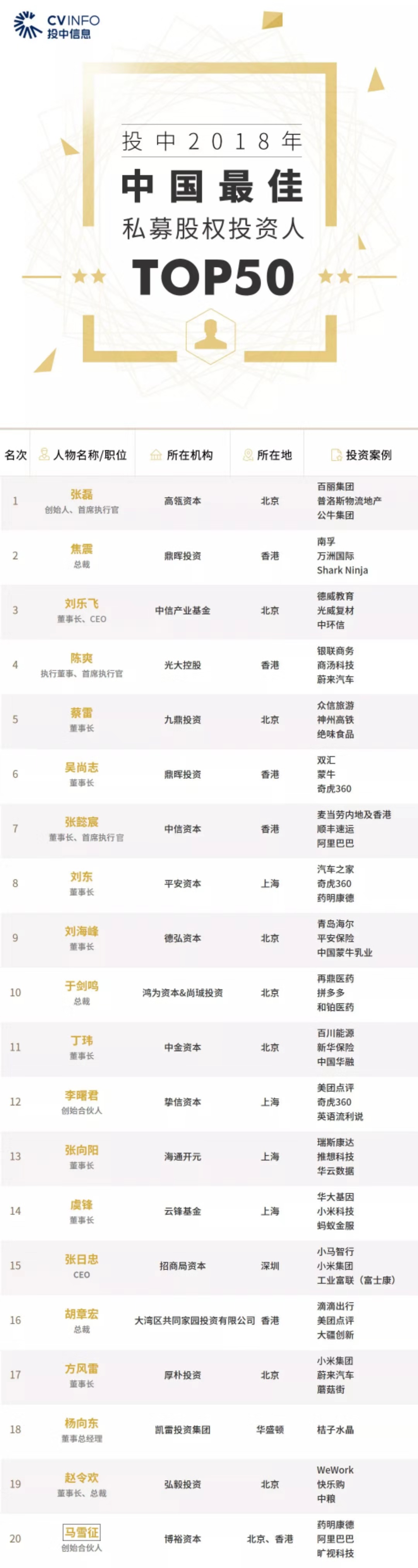 On September 19, ChinaVenture officially released the "ChinaVenture 2018 Investor Ranking." Compiled by the ChinaVenture Research Institute using the CVSource data system, the ranking is widely regarded as one of the industry's most authoritative, comprehensive, and objective lists. It is developed through a rigorous process of questionnaires, interviews, data collection, verification, standardized data processing, and scoring-based selection.