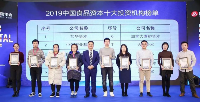 Among the honorees, Harvest Capital—recognized for its successful investments in leading food‑sector enterprises such as Qiaqia Food, Laiyifen, Eastroc Beverage, and Babi Food—was named a winner of the “2019 China Food Capital Top 10 Investment Institutions” award.