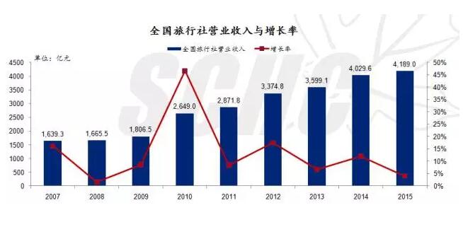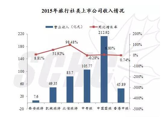 2015年旅行社类企业实现总收入505、23亿元,同比增长31.74%;净利润33.38亿元,同比降低8.76%。其中,中国国旅借力免税业实现约213亿收入,中青旅借力景区借力做大景区实现收入约106亿元。