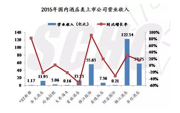 2015年酒店类上市企业实现总收入272.94亿元,同比减少5.37%;净利润21亿元,同比增加26.14%,酒店类企业经营业绩处于暂时性低谷。其中锦江旅游与锦江股份共实现营业收入17.97亿元;华住酒店、首旅酒店人别实现营收57.75、13.33亿元。首旅酒店通过收购如家,酒店数接近3000家,客房数超过35万间;锦江股份截至2015年末拥有酒店数超过4700家,客房数约48.6万间。