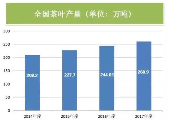 量价配合稳定,稳中略升。2017年,国内茶叶年消费量达到190万吨,较前一年增长8万吨,增幅为4.40%。