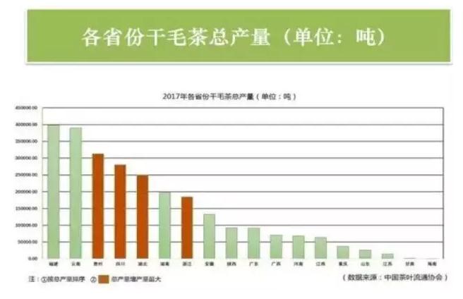 (注:以上统计结果结合了农业部种植业司、中国茶叶流通协会、中国食品土畜产进出口商会茶叶分会所分别发布的2017全国茶叶产供销情况)