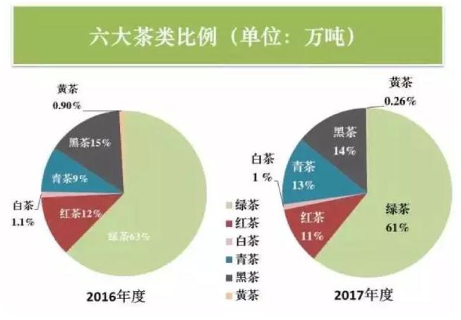 茶类结构持续优化。绿茶、乌龙茶占总产量的比重持续下降,分别降为61.4%、10.6%,红茶、黑茶、白茶、黄茶占比继续上升,更加均衡。