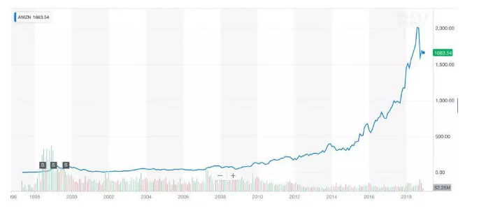 同样,即便我们都知道亚马逊是一家伟大的公司,而它的股票从上市时到现在已经涨了1000倍。可如果能有机会在它上市之初,也就是1997年时就购买这只股票,我们也很难一直将它握到现在而不卖掉。
