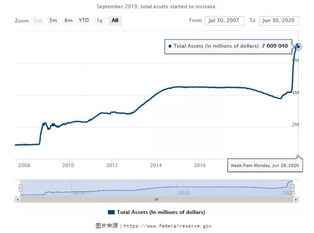 这张图是美联储的资产负债表,大规模的指数级扩张解释了此次全球股市暴涨的内核原因——资金流动性泛滥。