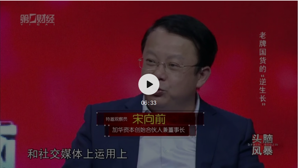 4月18日,加华资本创始合伙人宋向前受邀录制第一财经频道《头脑风暴》转型新活力老牌国货的逆生长。面对老牌国货转型突破,如何传承过往,耕耘当下,蓄力未来,宋向前指出:需要有非常强大企业的自我迭代升级能力,这就是一种进化。更多对老牌国货创新求变的精彩论述,请观赏“转型新活力老牌国货的逆生长”,精彩内容即将呈现。