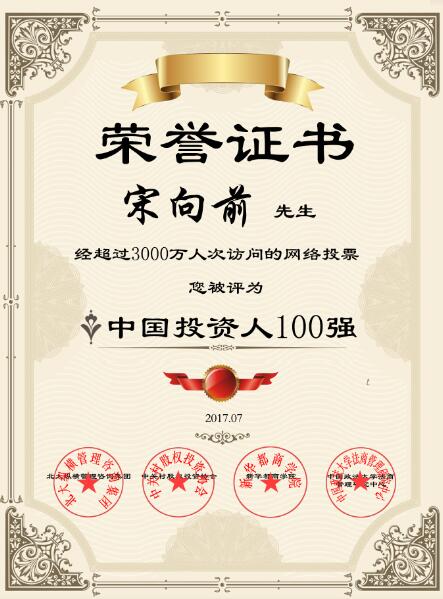 加华伟业资本董事长宋向前摘取“2017中国投资人500强”TOP100殊荣