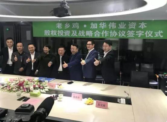 2017年11月16日,加华伟业资本与全国知名中式连锁快餐品牌老乡鸡签订了股权投资与战略合作协议。加华伟业资本在成功投资全国早餐食品龙头企业巴比食品后,在中式快餐行业的布局中再下一城;而老乡鸡也能够借助加华伟业在大消费领域的战略资源,进一步扩张全国市场。