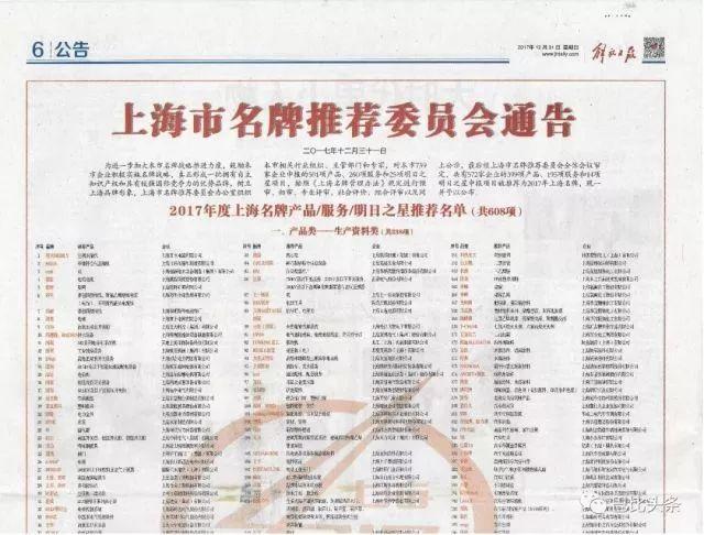 2017年12月31日,《解放日报》刊登了《2017年上海名牌产品名单》,巴比食品成功入选,获得了“上海名牌”称号。这份名单是经上海市名牌推荐委员会办公室组织相关部门审定的,对入选企业的社会知名度、行业领先度、创新能力等多维度指标进行考量,其申报审核内容广泛,标准严苛。
