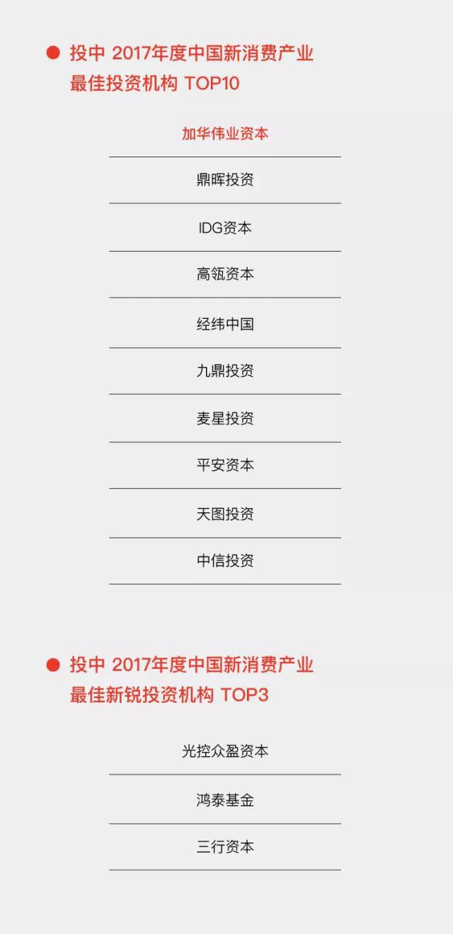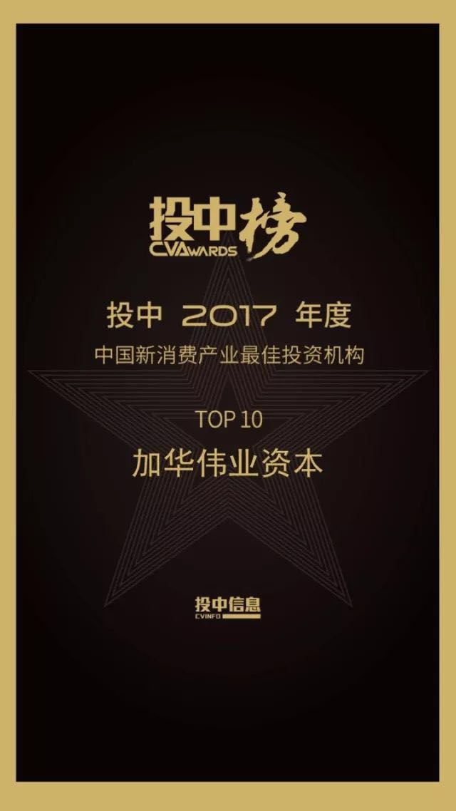 笃信价值的力量,加华伟业资本三度蝉联 “投中2017年度中国新消费产业最佳投资机构TOP10”