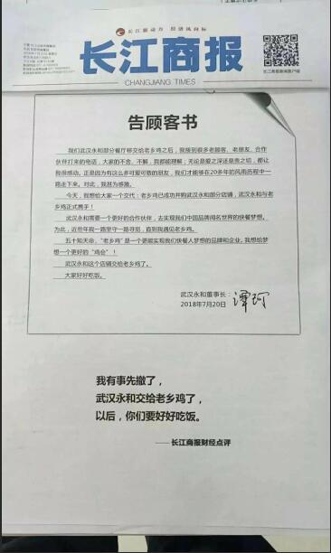 老乡鸡 | 收购武汉永和部分餐厅,让武汉人民继续“好好吃饭”