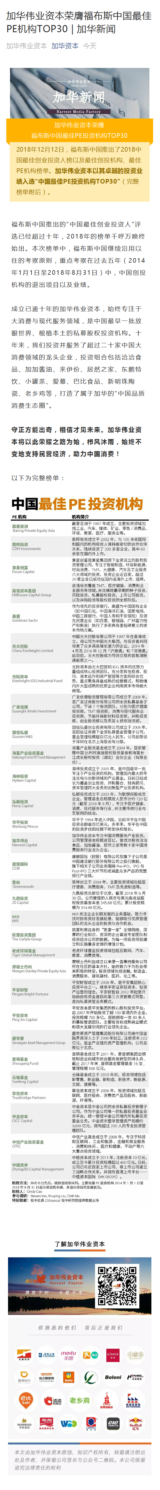 加华伟业资本荣膺福布斯中国最佳PE机构TOP30 | 加华新闻