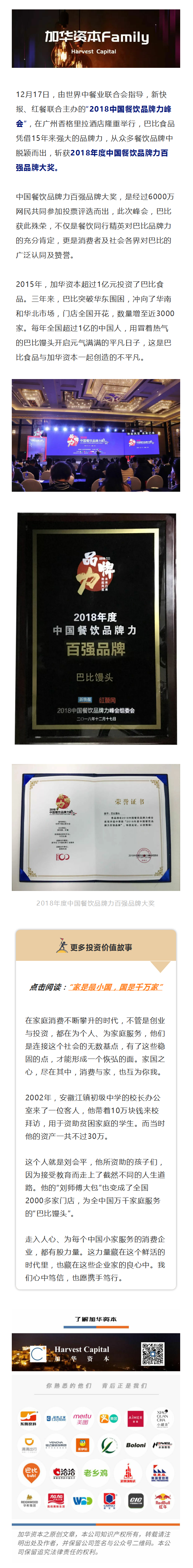 巴比食品喜获中国餐饮品牌力百强品牌大奖 | 加华Family