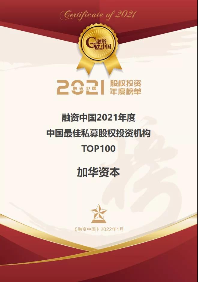 加华资本荣获融资中国2021年度股权投资榜单多项荣誉丨加华新闻