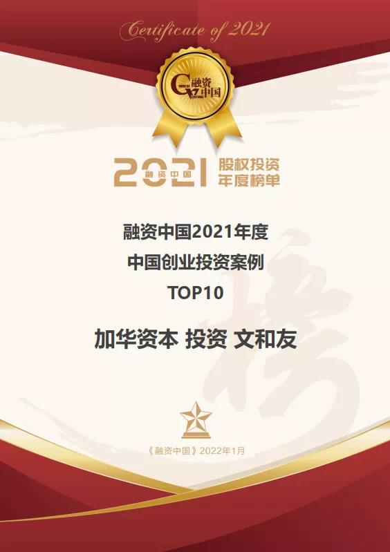 由加华资本独家A轮投资,红杉中国、IDG资本等多家机构参与B轮投资的“超级物种”文和友投资案例获得“中国最佳创业投资案例TOP10”