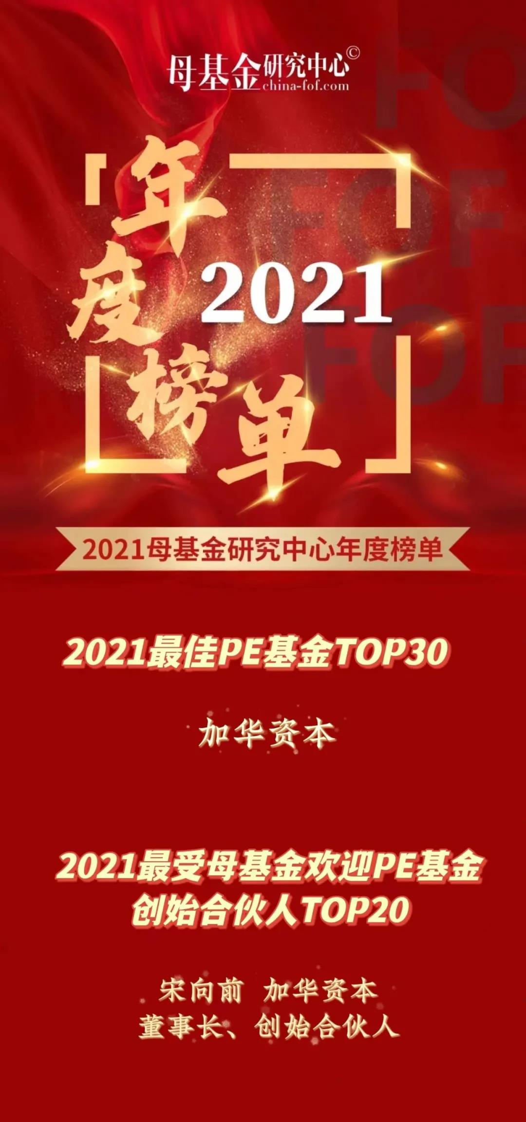 加华资本荣登“2021最佳PE基金TOP30”榜单。