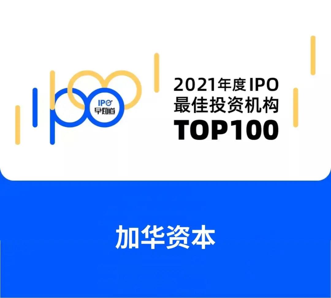 加华资本荣登IPO早知道「2021年度IPO最佳投资机构TOP 100」榜单