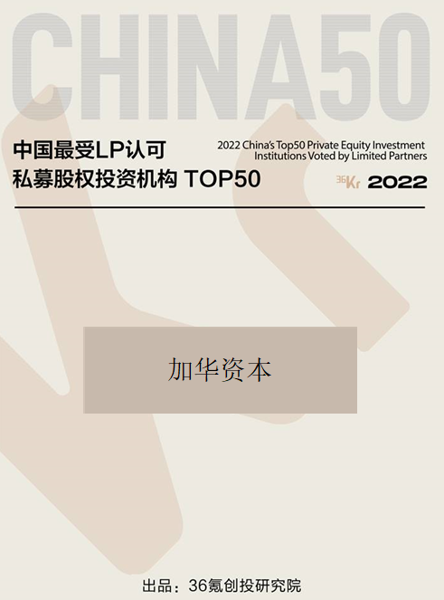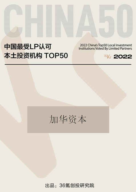 加华资本获36氪「最受LP认可私募机构」、「最受LP认可本土投资机构」TOP50