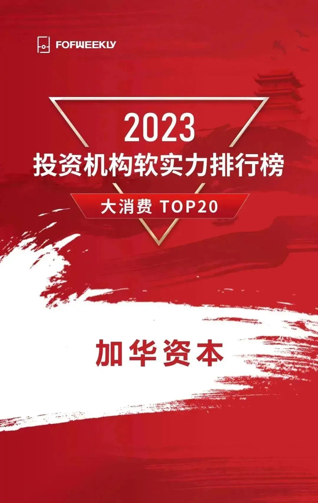 加华资本荣登母基金周刊「2023投资机构软实力大消费榜TOP20」丨加华荣誉
