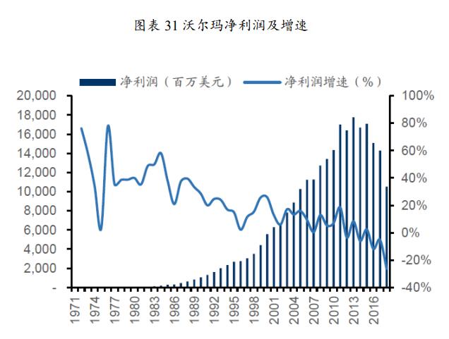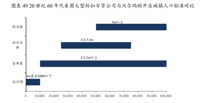 2)门店所在地需要符合城市发展的方向,随着城市化的推进,原先的城乡结合部将纳入城市范围,而沃尔玛以先发优势享受稳定的租期和较低的租金。20世纪70年代开始的逆城市化现象也使得部分郊区门店获得更多流量。