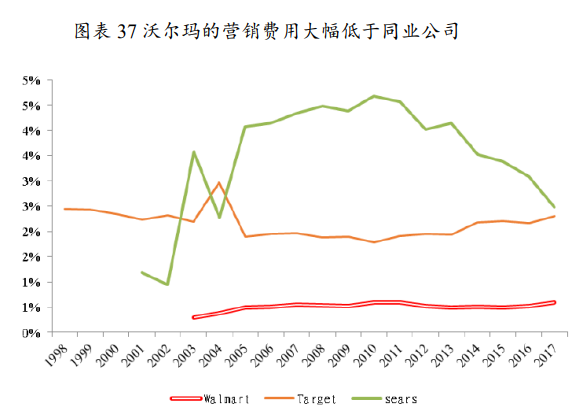 沃尔顿认为,通过广告获得的一次性顾客,远不及通过商品价格、品质带来的忠实顾客通过复购贡献的收入多。沃尔玛多年践行这一理念,广告投入很少,2003年至今的平均广告费用率为0.51%,而塔吉特达到2.15%。多年来公司较强的聚客能力源于其在国内一步步扩张并通过高性价比商品赢得的口碑,辅以各种门店促销活动,精准达到广而告之的目的。