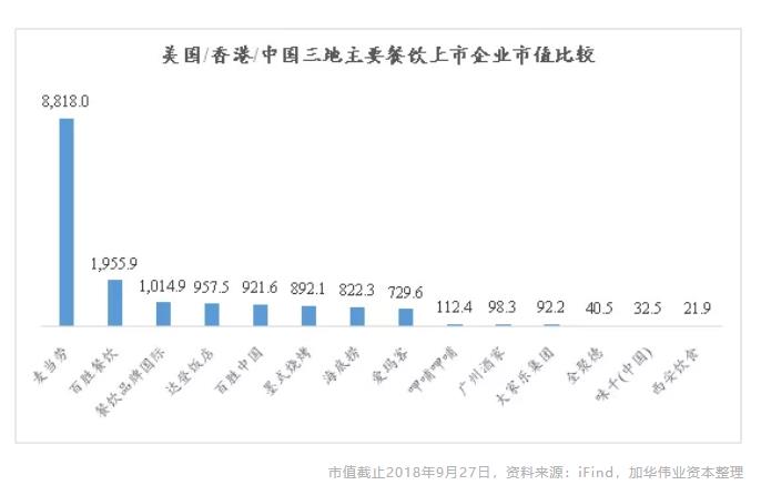 但是,在资本市场上,相比美国甚至香港的上市公司,中式餐饮公司的市值都远非一个量级。从市值上看,美国最大的餐饮企业麦当劳,其市值规模约等于100个广州酒家,而后者已经是A股市场的冠军了。