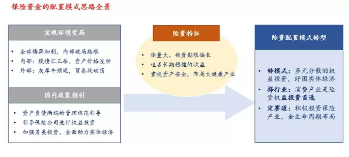 从内外部环境来看,内部经济形势不明朗,结构转型在途,政策引导接连不断;而外部全球风险趋同,优质资产难觅。全球环境面临着从风险资产波动、经济发展周期、宏观政策导向、利率与货币政策方向上的驱动,而国内政策对于险资配置的指导也更为积极。