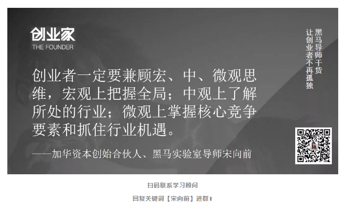 现创业黑马与宋向前联合开设“拔萃实验室”,助力创业者踏准产业周期,构建核心壁垒,成为行业冠军。(点击了解并申请加入拔萃实验室,与宋向前老师一起加速成长)