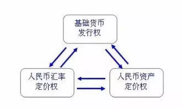 在任何一个市场经济国家,其经济的顶层权力都是由“货币发行权”、“汇率定价权”和“资产定价权”组成。这三大权力之间相互联系而形成一个相互影响的权力体系,决定着市场体系的广度、深度和功能,主导着经济体系的运行和全社会财富的分配。如果没有顶层权力概念或者不了解顶层权力之间的互动关系,就不可能了解货币、外汇、资本市场、产业资本、政府财政、对外经济等彼此之间复杂的关联关系;如果没有站在市场经济“顶层权力体系”这一制高点进行观察和分析,就不可能制定出系统的、具有前瞻性的宏观经济政策。经济顶层权力体系的互动结构示意图如下: