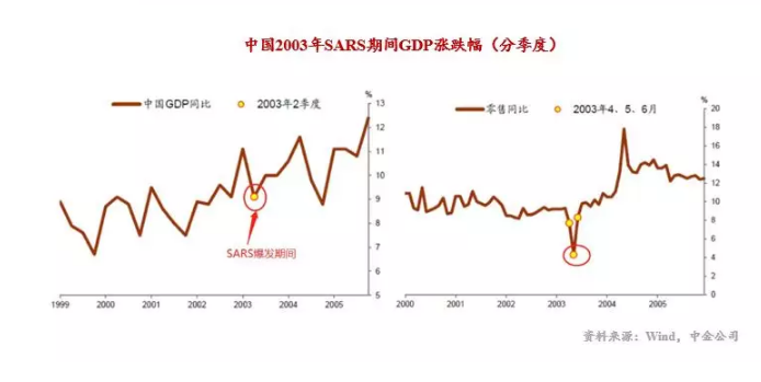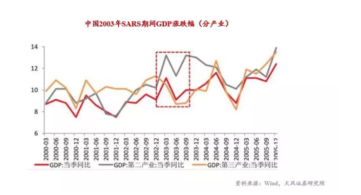 以史为鉴。2003年抗击非典,当年GDP依然保持在10%以上的双位数增长。但有两点可能被大家忽略了。